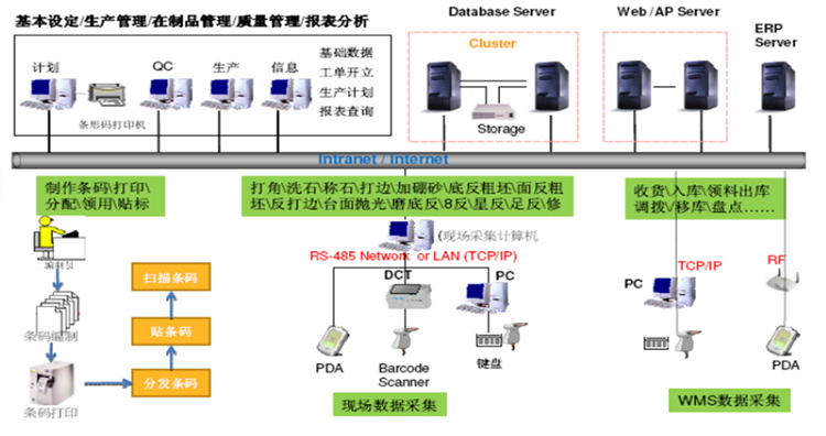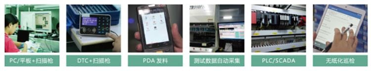 設備+條碼閱讀器),通過掃描條碼、手工錄入、設備集成等方式收集關鍵物料、檢測結果、軟件版本、測試數據、維修、抽檢、包裝、重工等信息。