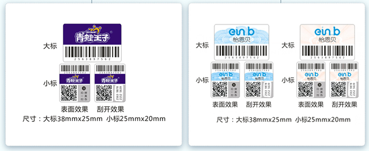 2、同時產生兩級或三級編碼(中包裝和大包裝相關的對應碼),在產品裝箱或入庫時貼對應的防竄貨標簽條碼;